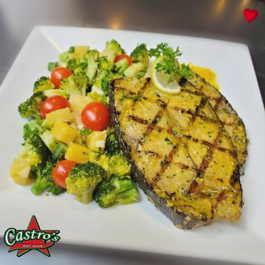 Castro's grilled fish and salad offers a delicate, flaky fillet paired with a vibrant, freshly tossed salad. A wholesome and flavorful option that's as nourishing as it is delicious.