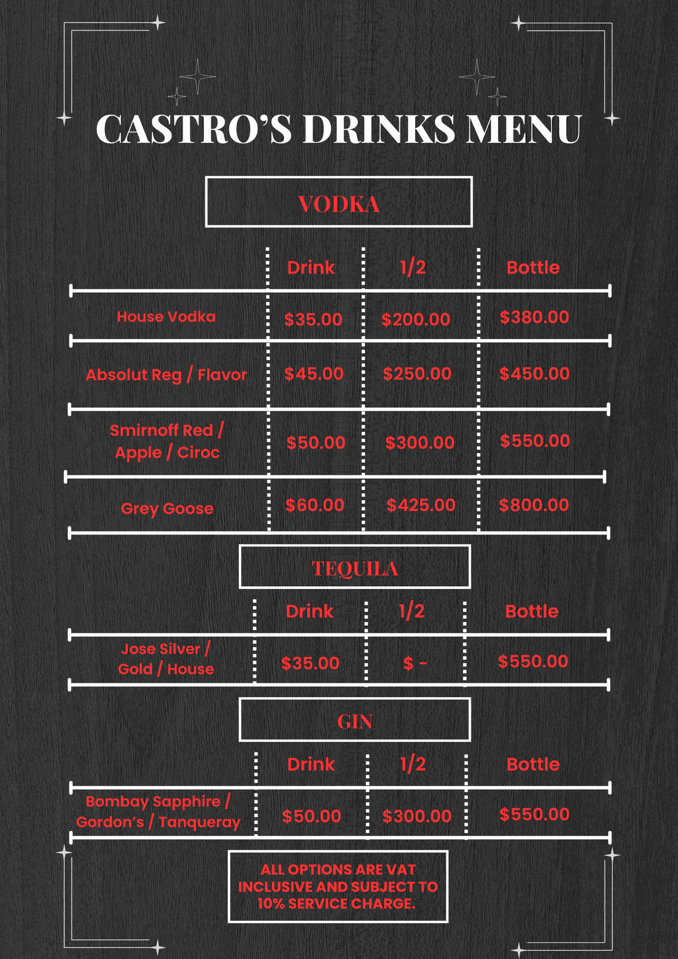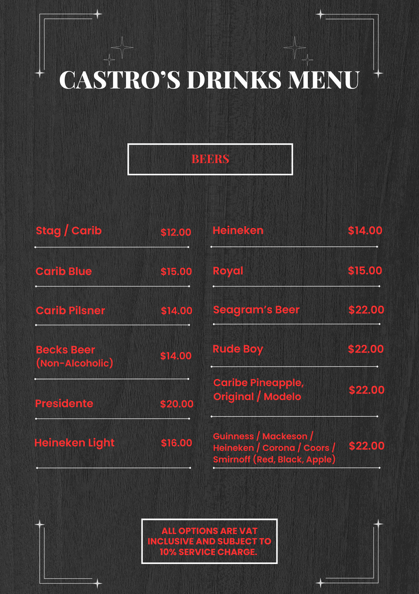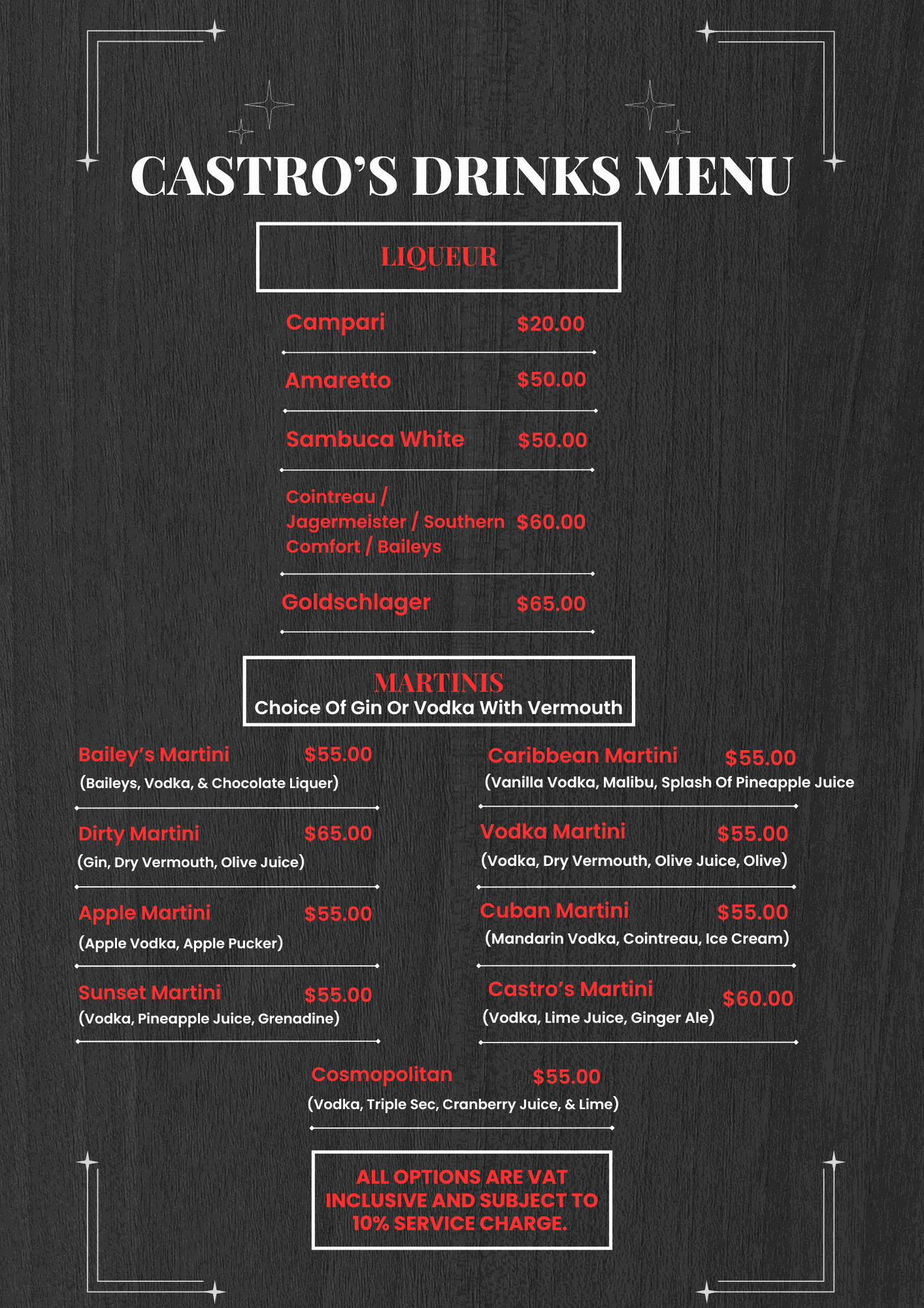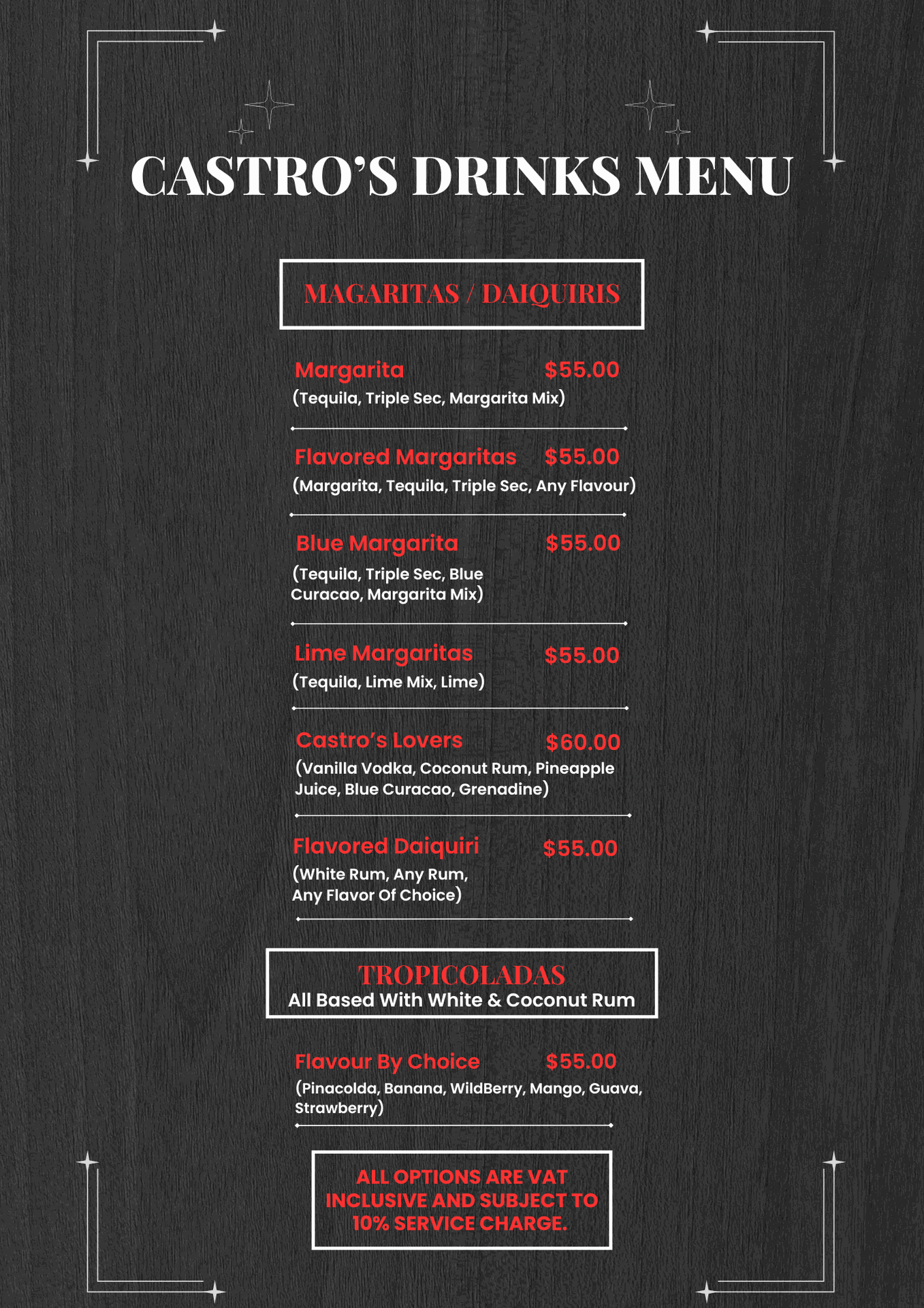 CASTRO'S DRINK MENU