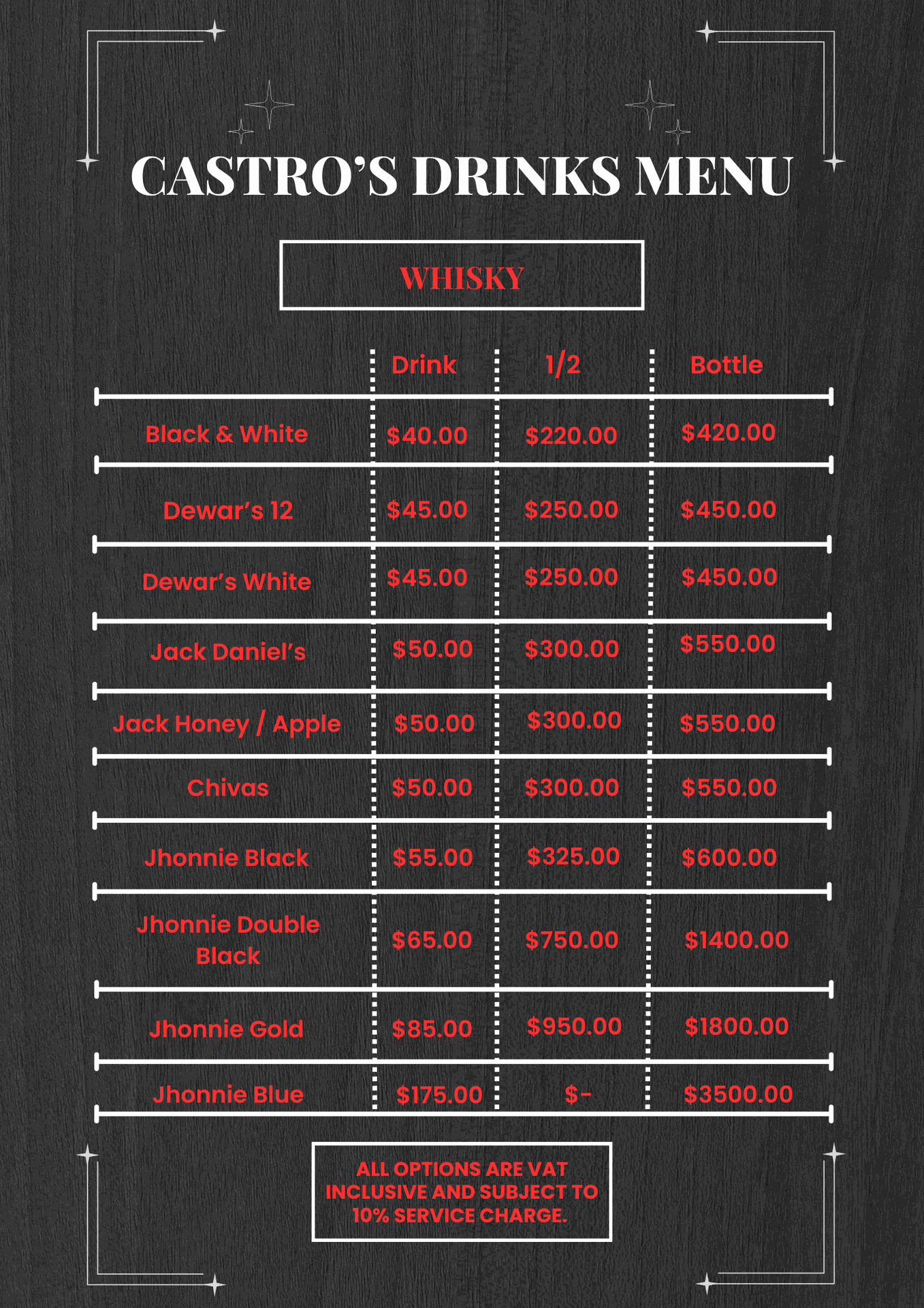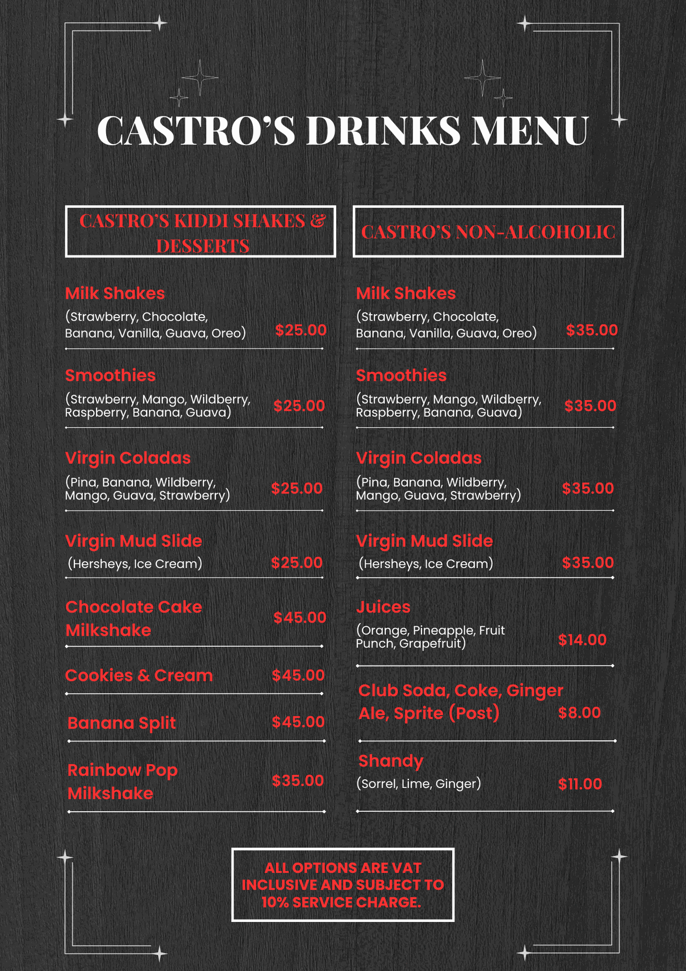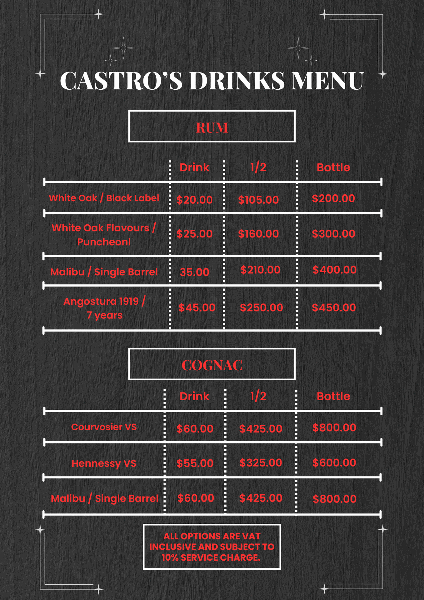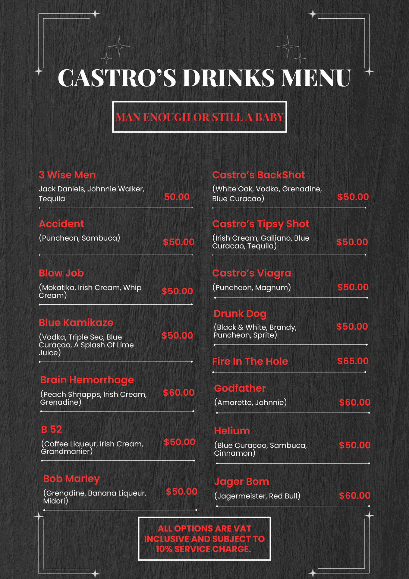 CASTRO'S DRINK MENU