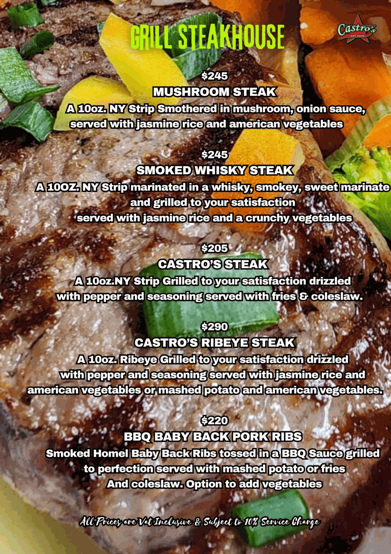 Enjoy our premium cuts of steaks and ribs all expertly prepared and served with delicious sides for the ultimate dining experience.